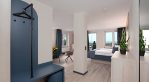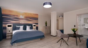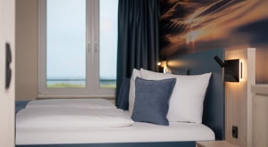 Die Doppelzimmer mit Balkon und direktem Meerblick befinden sich in der 1. Etage und bieten Platz für maximal 2 Personen. Sie verfügen über ein Doppelbett (180 cm x 200 cm), sind mit TV, Zimmersafe, Minibar, Föhn, Kosmetikspiegel, Dusche & WC ausgestattet und bieten einen direkten Blick auf die Ostsee. Zwei der Zimmer verfügen über